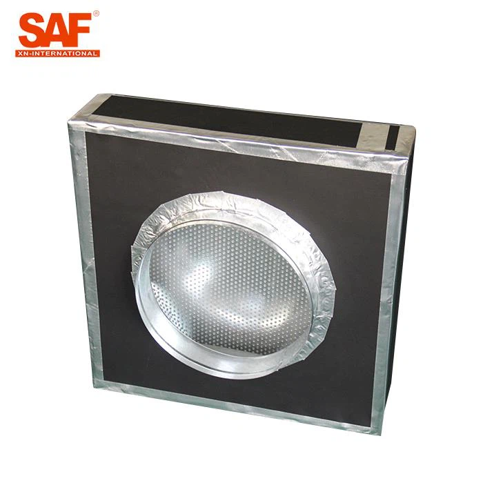 Aonaid scagaire teirminéil HEPA diúscartha ardteicneolaíochta SAF Glacadh le struchtúr dúnta, chun cosc a chur ar dhroch sceitheadh idir inlet agus asraon. d'fhonn an t-ábhar scagaire éifeachtach a chosaint, bhí feadáin scagtha críochnaithe HEPA feistithe le pláta diffuser seasta, comhpháipéar píobáin bhabhta, agus glan cosanta san inlet aer.